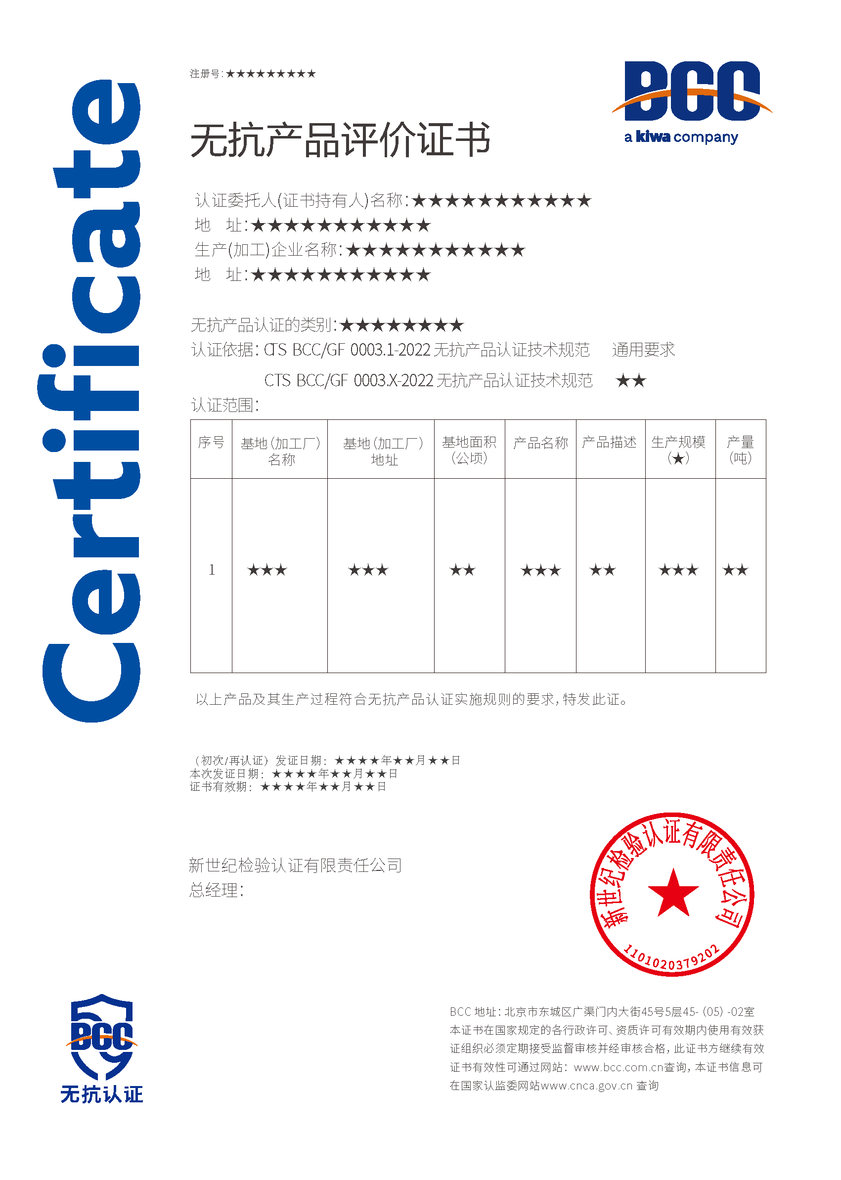 本頁涉及的認證服務中均有對應的《認證實施規(guī)則》,BCC擁有其最終解釋權。任何組織及個人未經BCC許可,不得以任何形式全部或部分使用(法律要求除外)認證相關信息。如需獲取相關實施規(guī)則請用以下方式聯(lián)系獲?。弘娫挘?10-58579316 郵箱:fwjs@kiwa.cn