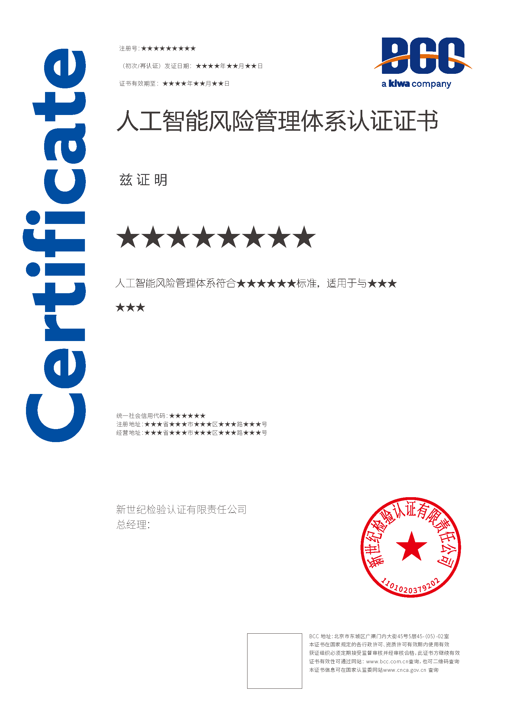 本頁涉及的認(rèn)證服務(wù)中均有對(duì)應(yīng)的《認(rèn)證實(shí)施規(guī)則》,BCC擁有其最終解釋權(quán)。任何組織及個(gè)人未經(jīng)BCC許可,不得以任何形式全部或部分使用(法律要求除外)認(rèn)證相關(guān)信息。如需獲取相關(guān)實(shí)施規(guī)則請用以下方式聯(lián)系獲?。弘娫挘?10-58579316 郵箱:fwjs@kiwa.cn