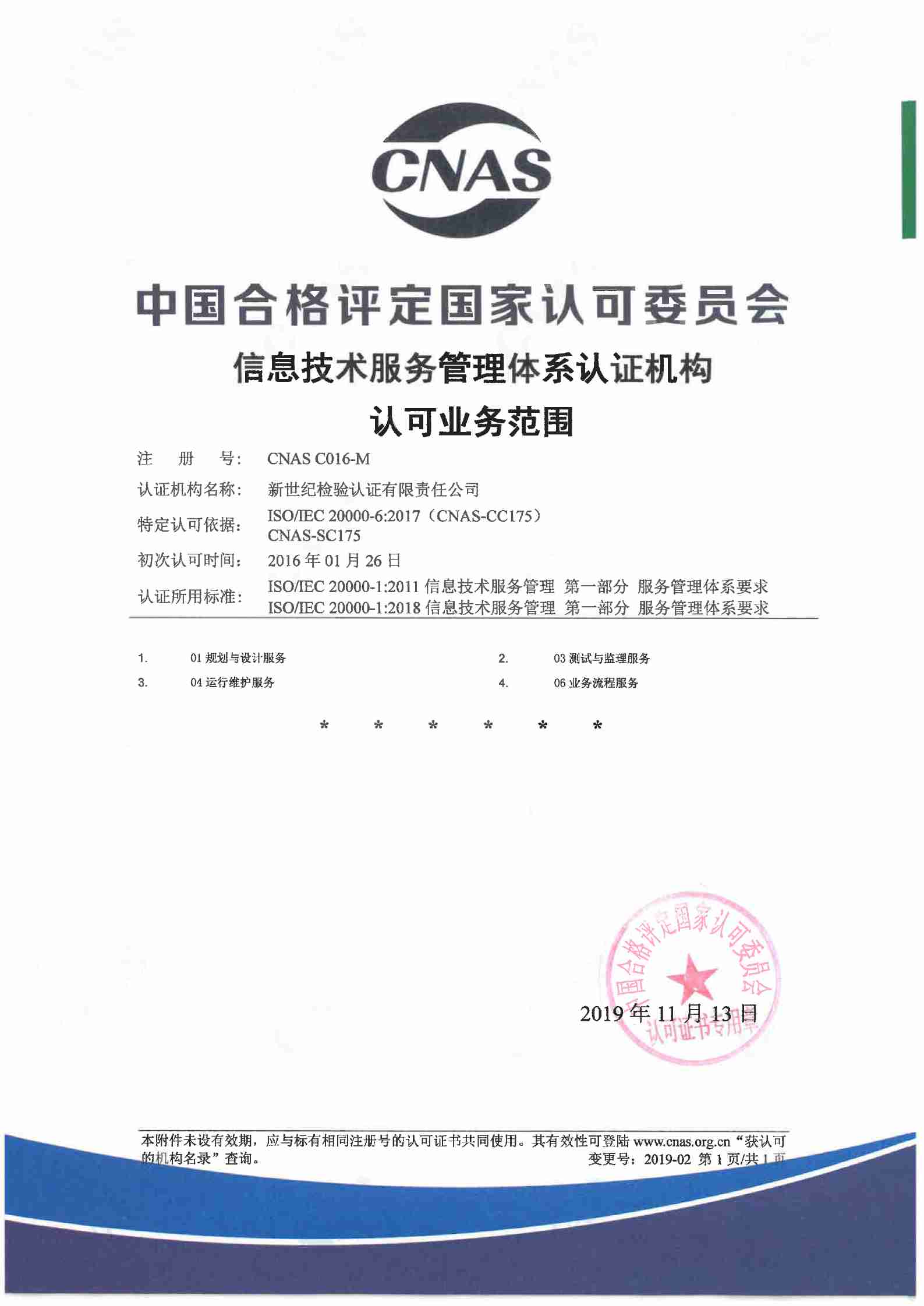 信息技術(shù)服務管理體系認證機構(gòu)認可證書 |