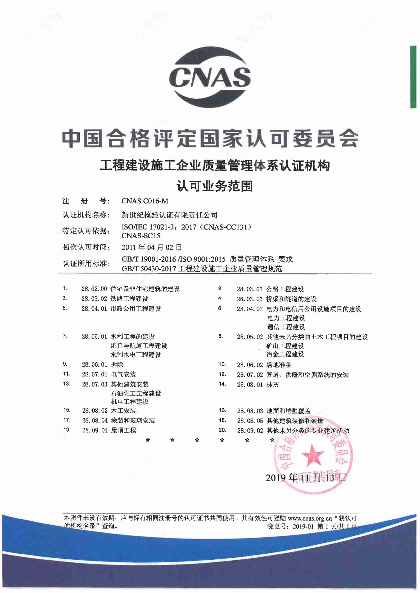 工程建設施工企業(yè)質(zhì)量管理體系認證機構(gòu)認可證書 |