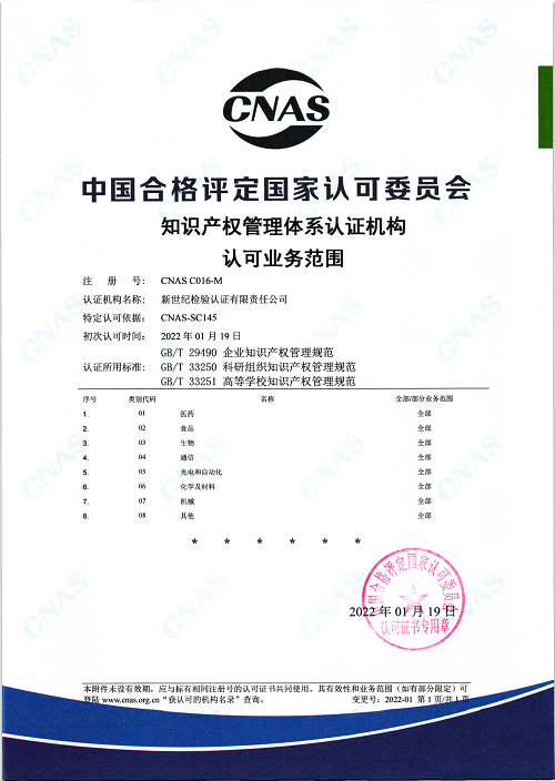 知識產(chǎn)權(quán)管理體系認可證書 |