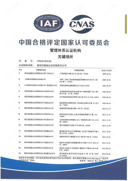 管理體系認證機構(gòu)關(guān)鍵場所(一) |