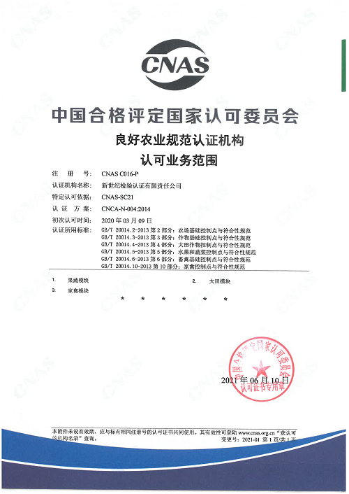 良好農(nóng)業(yè)規(guī)范認可證書 |