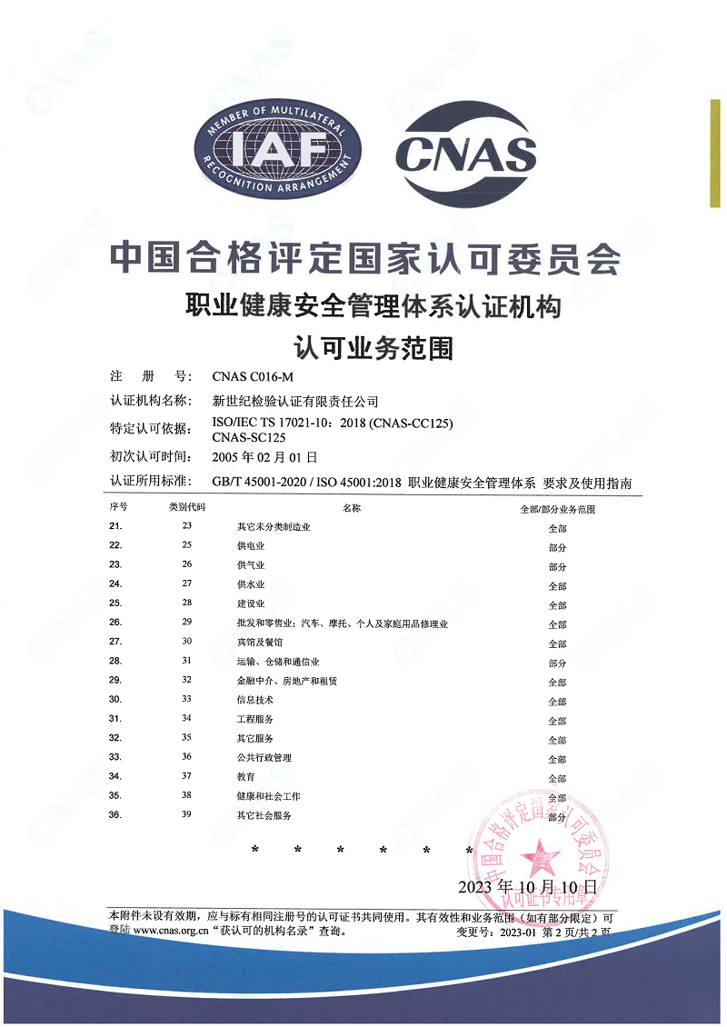 職業(yè)健康安全管理體系認證機構(gòu)認可證書(二) |