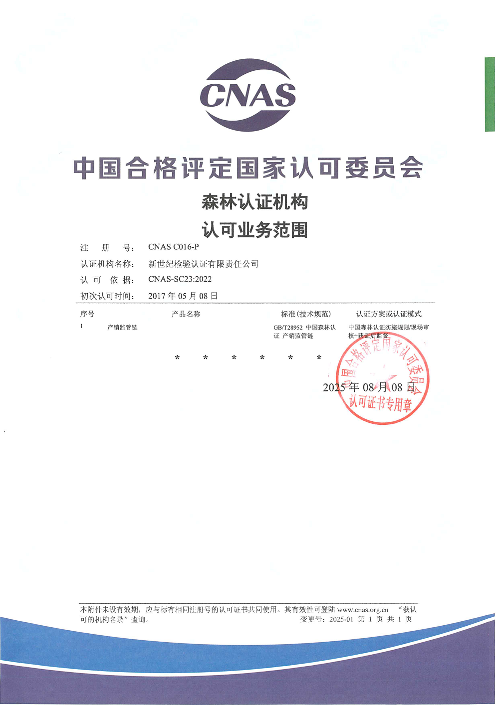 森林認證機構(gòu)認可證書 |
