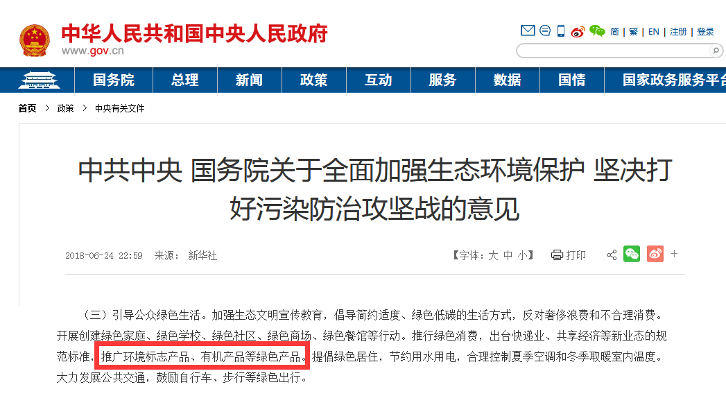 意見指出:推廣環(huán)境標(biāo)志產(chǎn)品、有機(jī)產(chǎn)品等綠色產(chǎn)品。
