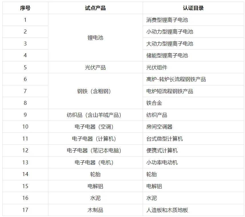 關(guān)于印發(fā)《產(chǎn)品碳足跡標(biāo)識(shí)認(rèn)證試點(diǎn)認(rèn)證目錄(第一批)》的通知